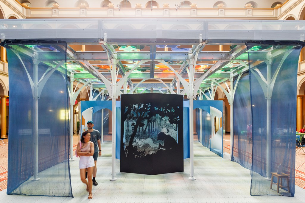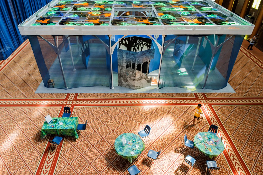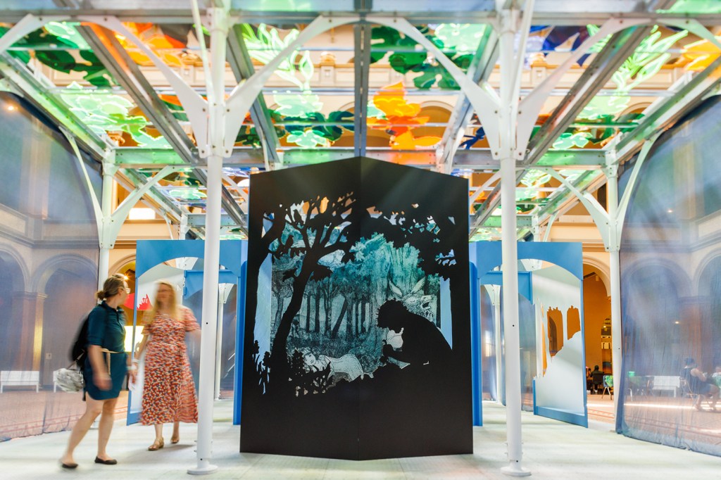 The artwork from the book (pictured above, right) formed part of an immersive installation for visitors to walk through within the Great Hall at the National Building Museum (pictured above) and coincided with the staging of A Midsummer Night’s Dream at The Playhouse at the NBM in July and August.