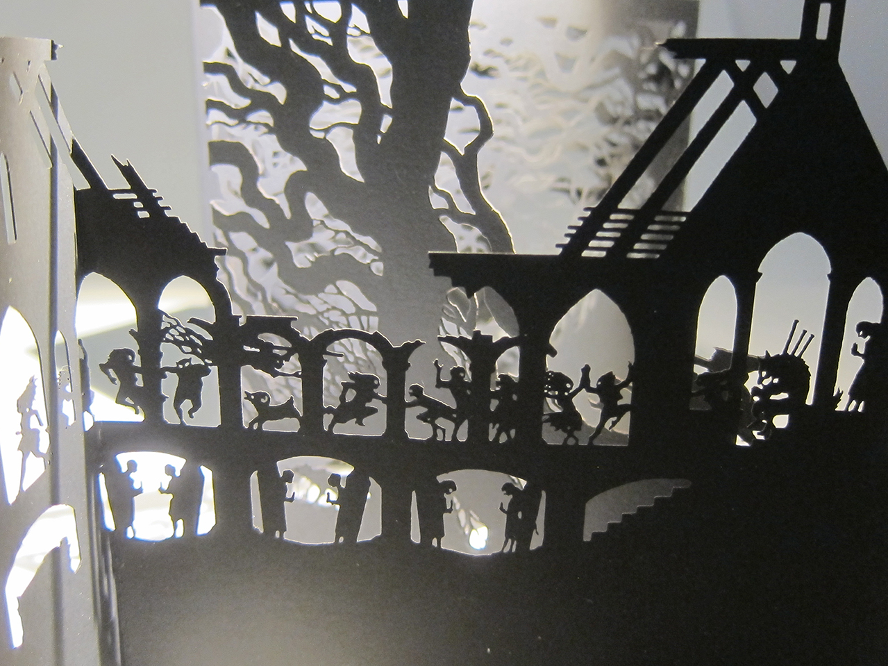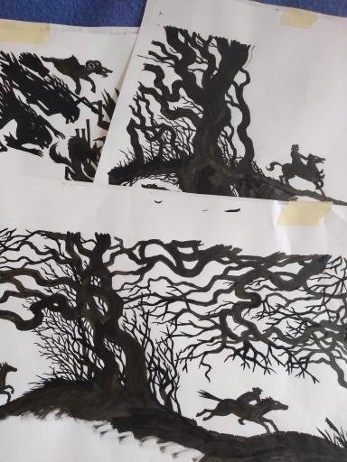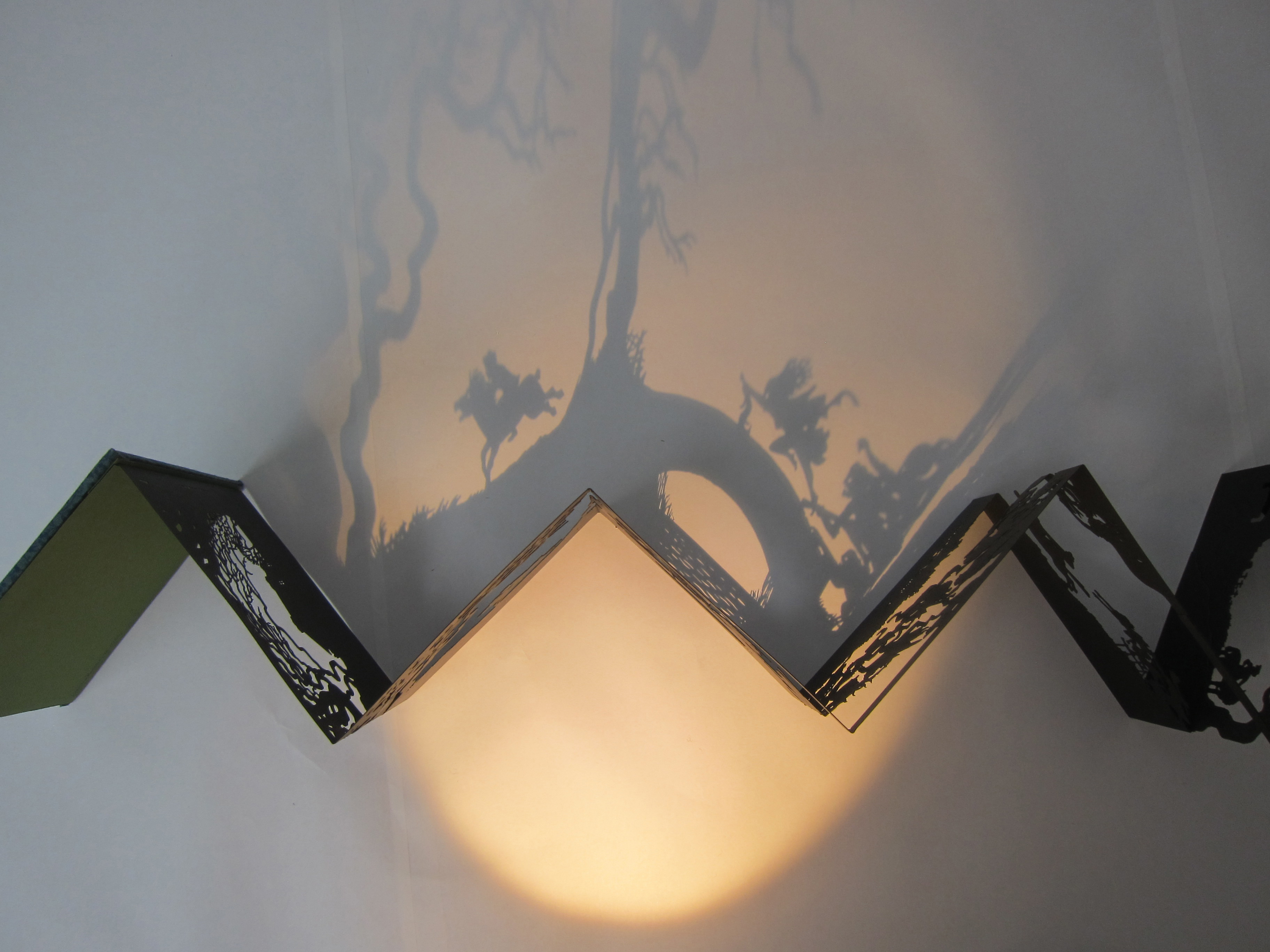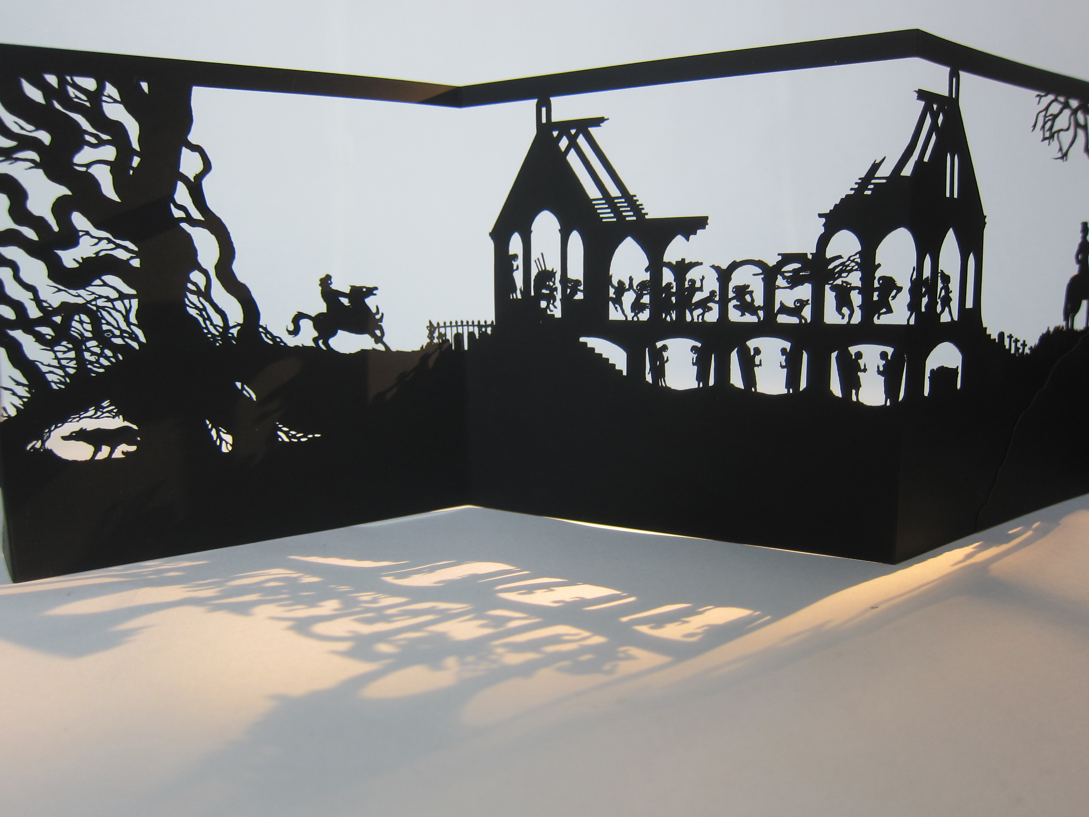Robert Burns’ epic poem Tam O’Shanter is re-told in a wordless paper-cut leporello, which follows the misadventures of a farmer on his way home from the pub and a chance encounter with a coven of witches and warlocks on the way home.