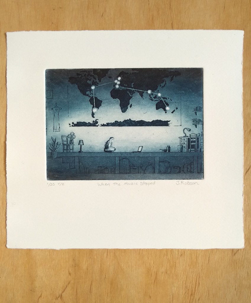 More information about this print at joannarobson.blogspot.com/2025/11/new-etching-when-music-stopped.html